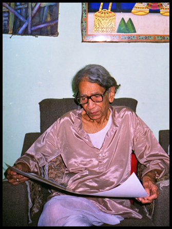 In der Regel saß Ram Gopal Vijayavargiya mit angezogenen Beinen auf einem Charpai in einem der oberen Räume seines Hauses in der Altstadt Jaipurs, umgeben von hunderten alter Skizzen und Zeichnungen und - malte. Auch als er über 90 Jahre alt war, malte er genauso, schweigsam und ab und zu einen Tee trinkend, den mein Sohn übrigens verabscheute, weil sich stets eine verdickende Haut auf der Oberfläche bildete, die beim Versuch durch Pusten das Getränk auf eine trinkbare Temperatur zu bringen, auch noch Runzeln warf. Ram Gopal war über die Jahre noch ruhiger geworden, aber ein Funkeln huschte über sein Gesicht, seine Augen begannen zu leuchten, wenn man ihm Fotos traditioneller indischer Malereien zeigte. Er erkannte nicht nur jede Malschule sondern auch jede Hand und war persönlich mit jedem Künstler seiner Zeit vertraut. Es gab kaum eine bekanntere indische Malerei in bedeutenden westlichen Sammlungen, die nicht durch seine Hand gegangen war. Sein Lachen war dabei unwiderstehlich, seine Kommentare zu einzelnen Malereien und Zeichnungen so treffend, dass es als Verlust bezeichnet werden muss, seine Bemerkungen nicht aufgezeichnet zu haben. Bei einem meiner letzten Besuche zeigte ich ihm über eine Videokassette den Film Der Traum vom Taj Mahal, ein von diversen Fernsehanstalten international ausgestrahlter Beitrag des ZDF über Rajasthan und das Moghulreich, bei dessen Entstehung mir die wissenschaftliche Beratung oblag. Nie vergessen werde ich seine Kommentare zu der Sequenz, in der Maler bei der Arbeit im kaiserlichen Atelier gezeigt werden. Da das Filmteam keine Aussicht hatte, originale Moghulalben zu filmen, wurden die Abschnitte mit den erforderlichen Malereien in Berlin von faksimilierten Reproduktionen abgelichtet und an die entsprechenden Stellen der Dokumentation eingeführt. Von jeder der dabei gezeigten Malereien konnte Ram Gopal Vijayavargiya die Datierung, Künstler und Aufenthaltsort nennen!